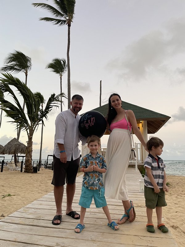 «Ми полетіли відпочивати в Домінікану. Там Альона має подружку. Дружина віддала їй конверт із крайнього УЗД, де вказана стать дитини. Вона все організувала і таким чином ми дізналися, що в нас буде дівчинка!» — поділився Бережок.