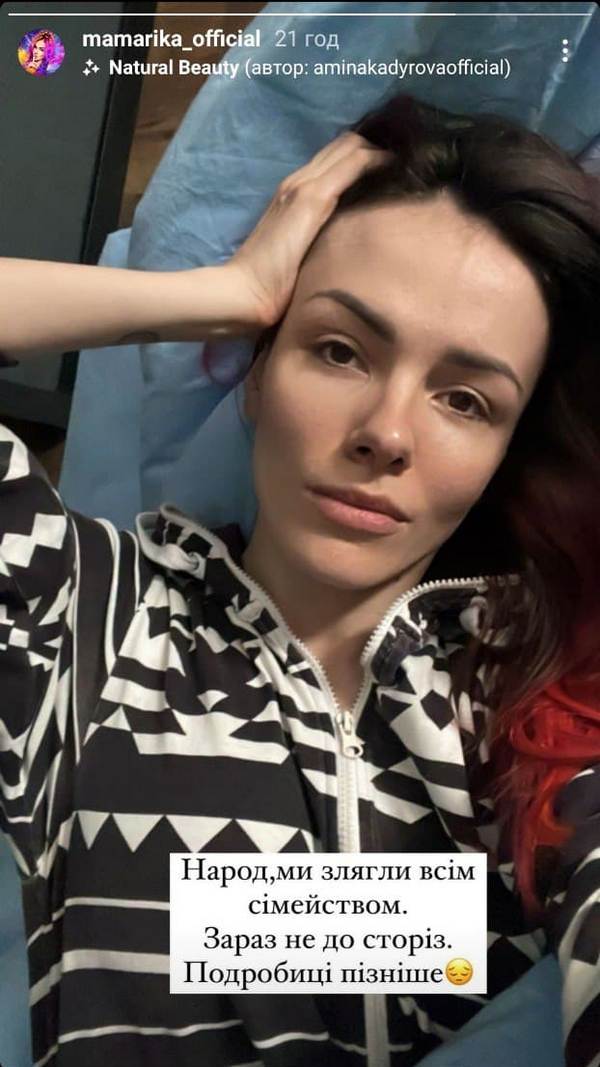 Співачка повідомила в Інстаграм, що захворіла разом із чоловіком Сергієм Середою та шестимісячним сином Давидом. «Злягли. Усі подробиці потім. Зараз не до сторіс», — повідомила MamaRika в Інстаграм. Ділитися подробицями та розповідати про своє самопочуття вона не стала.