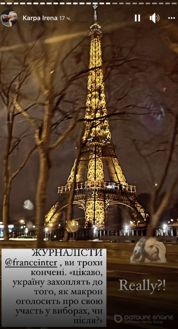 Карпа з обуренням розповіла про те, як цинічно журналісти одного з французьких видань запитують себе: «Коли Росія нападе на Україну? Чи відбудеться це до того, як президент Макрон оголосить про свою участь у виборах, чи після?»