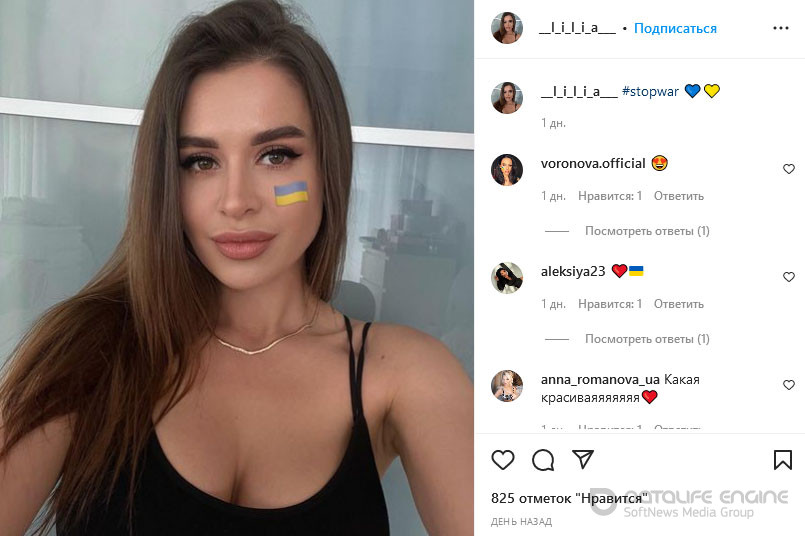 Так, кілька хвилин тому Лілія опублікувала в соцмережі пост, в якому чітко вказала, на чиїй стороні в початій путіним загарбницькій війні.