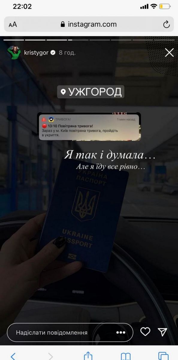 «Я так і думала. Але я їду все рівно. Тримайся, моя рідна» — прокоментувала своє фото Христина.