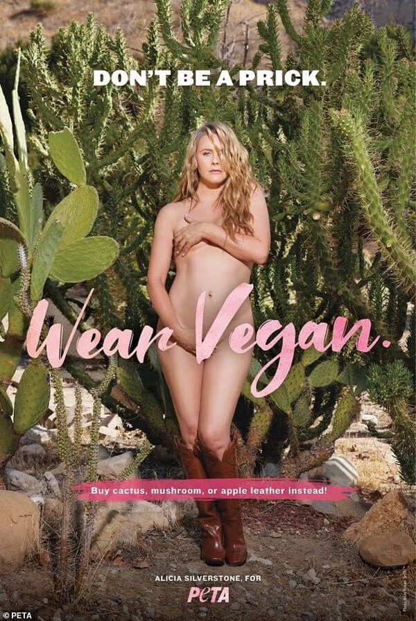 Однак це зовсім не реклама взуття. Сільверстоун приєдналася до групи знаменитостей, які закликають всіх відмовитися від виробів з натуральної шкіри. Кампанію проводить міжнародна організація PETA. Вона захищає тварин та екологію.
