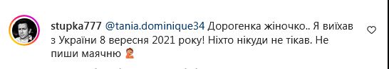 Одна з коментаторок поцікавилася, як Ступка зміг виїхати з України з урахуванням того, що в країні йде війна. Той відповів, що виїхав з країни ще у 2021 році.