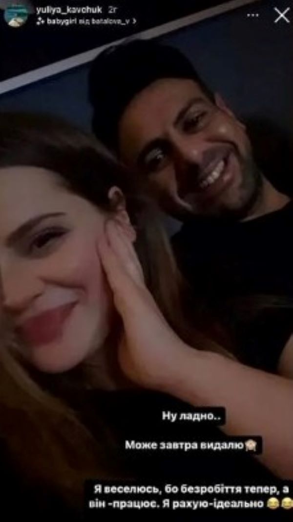 «Ну гаразд… Може завтра видалю. Я веселюся, бо безробітна тепер, а він — працює. Вважаю — ідеально», -так пожартувала Кавчук про своє теперішнє життя.