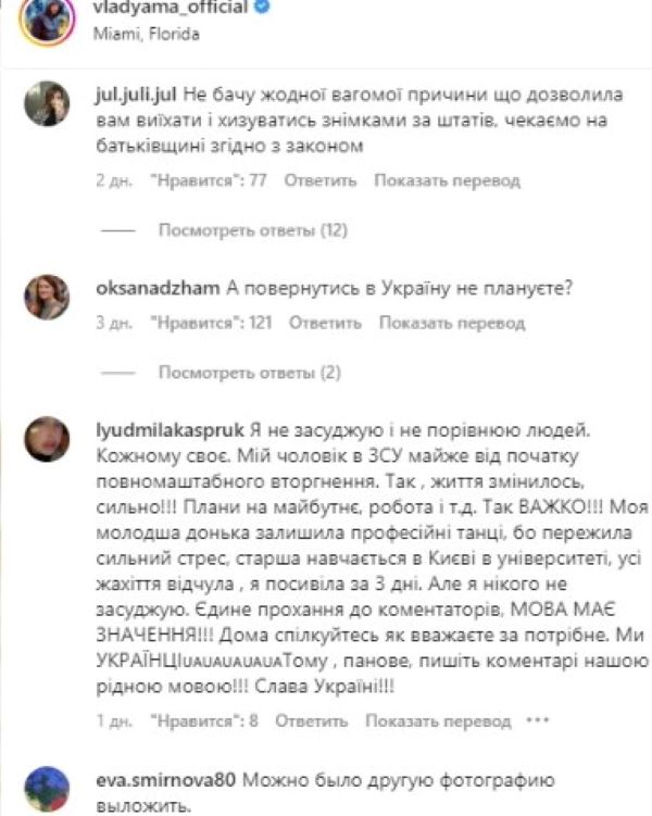 Яма пропонує придбати особливі лоти, серед яких — спільний прямий ефір, заняття з танців, онлайн тренування, постановка танцю, особиста зустріч та інше… Проте фоловери в коментарях обурюються тим, що Влад не повертається в Україну, більше того — хизується відпочинком на пляжі. Вони радять хореографу їхати до дому, та навіть відправляють на фронт.