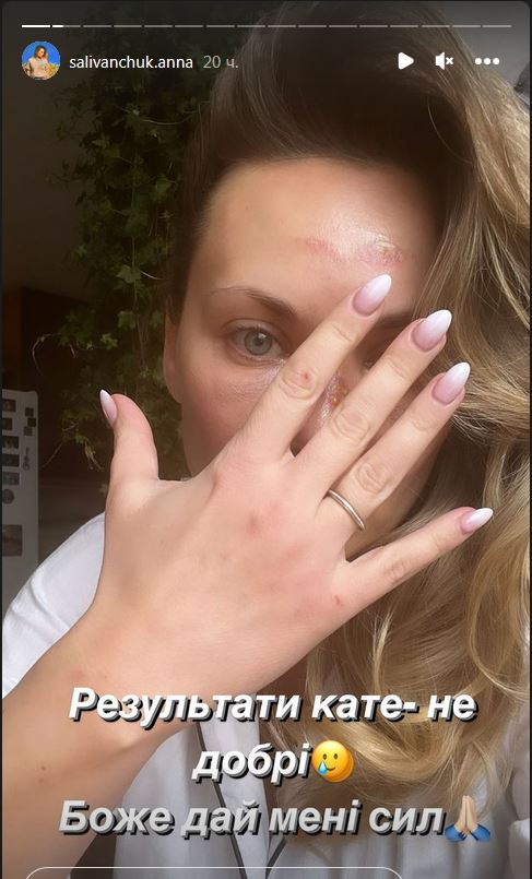 В Instagram акторка показале себе «у всій красі» — без масок та косметики, згадавши про слова підтримки одного із знайомих. Той порадив їй поставитися до травми, як до ролі, уявивши, що все це — грим. «І я подумала — точно! Я завжди грала гарних сексуальних дивчат, а мріяла зіграти якусь зечку-наркоманку, жінку, яку побили і яка страждає», — каже Саліванчук та пропонує режисерам пам'ятати, що вона може бути і такою.