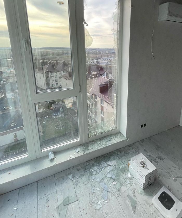У нас під під’їздом горів російський танк, тому будинок дещо постраждав. Дотепер про це нагадує кіптява за вікном, посічений фасад. В стінах шматки снарядів позалишались. Зараз жалкую, що не залишила снаряд в стіні на згадку і не взяла його в рамку. Ми поміняли і стіни, і шпалери, все зробили наново.