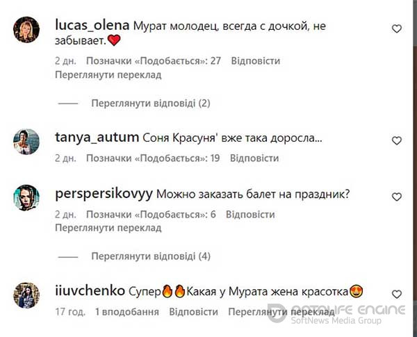 В коментарях читачі похвалили Мурата за те, що він не забуває про рідну доньку, незважаючи на молоду дружину і падчерку.