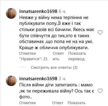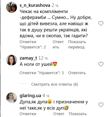Фоловери Камінської оцінили її «п'яту точку». Деякі з інтернет-користувачів залишили негативні коментарі, наголосивши на недоречності таких фотографій, коли в Україні триває війна.