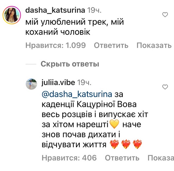 «Вова весь розцвів і випускає хіт за хітом нарешті, — написали у коментарях. - Наче знов почав дихати й відчувати життя».