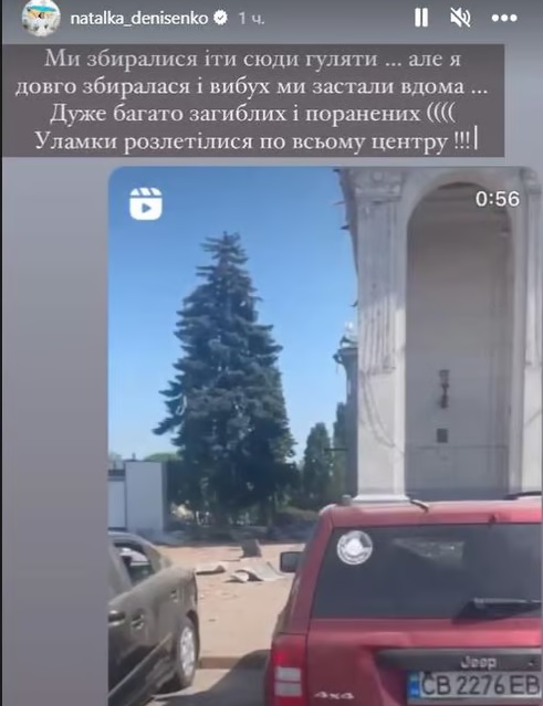 «Ми збиралися йти сюди гуляти, але я довго збиралася, і вибух ми застали вдома. Дуже багато загиблих і поранених. Уламки розлетілися по всьому центру», — написала у соціальній мережі Денисенко.