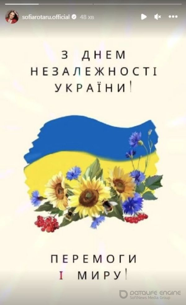 «З Днем Незалежності України. Перемоги і миру!» — побажала землякам зірка.