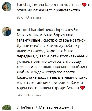 Фоловери артиста в коментарях висловлюють жаль через ситуацію, що склалася, але знайшлися і ті, хто виступив проти виступів Галкіна в Казахстані.