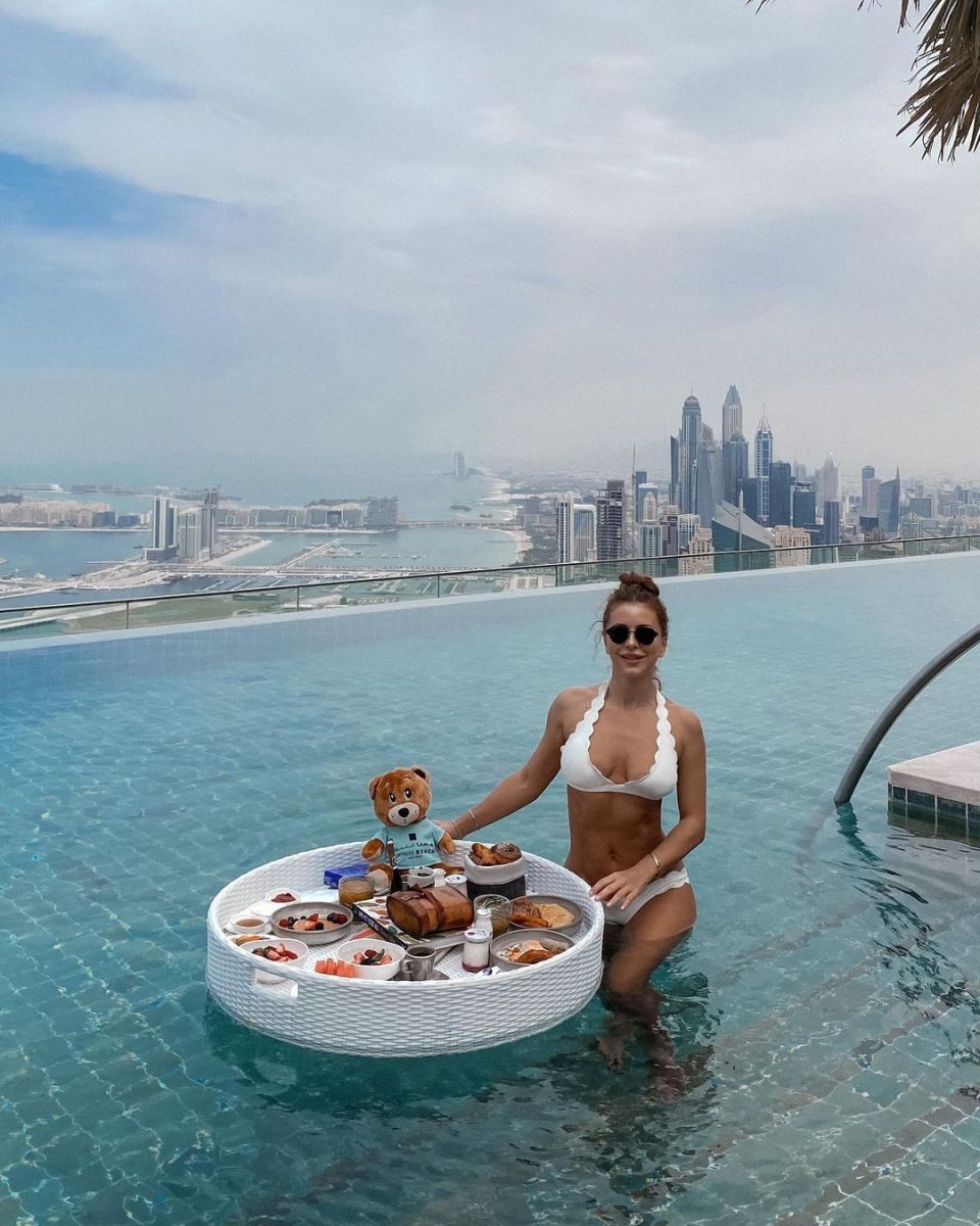 Зрадниця-співачка Ані Лорак, яка буде опікуватися дітьми у цинічному шоу на російському телебаченні, де маленькі росіяни співатимуть пісень про те, який «путін молодець», поділилась черговим знімком із відпустки. Уродженка Буковини, яка живе та працює у рф, опублікувала фото, де вона насолоджується відпочинком у басейні, розташованому на даху. З нього відкривається захопливий краєвид. Лорак натягнула на засмаглі принади білосніжний купальник і сховала очі за темними окулярами.