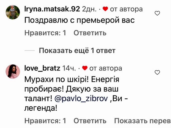 «Мурахи по шкірі! - написали у коментарях. — Енергія пробирає! Дякую за ваш талант! Ви — легенда!»