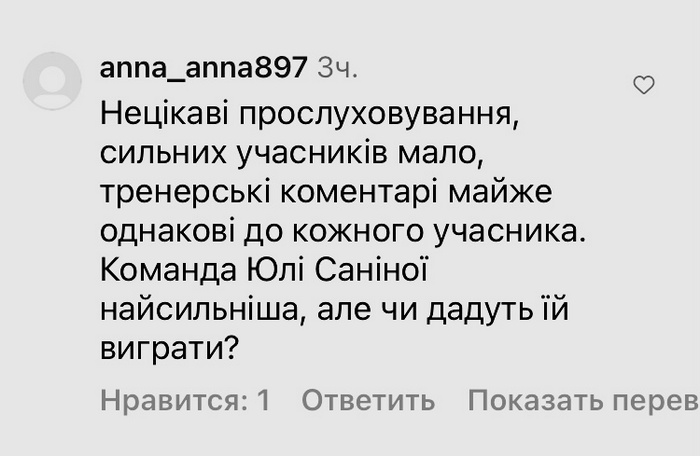 «Нецікаві прослуховування, сильних учасників мало, тренерські коментарі майже однакові до кожного учасника», — поділилися враженнями.
