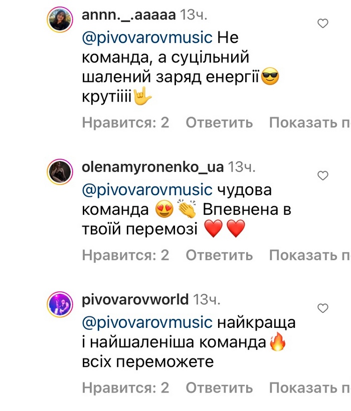 «У Пивоварова найкраща і найшаленіша команда, — вважають у мережі. - Впевнена у твоїй перемозі».