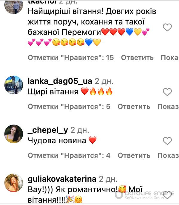 Під знімком одразу ж з'явилися вітання та побажання парі: «Відмінно, коли народжується нова родина! Щастя, кохання, перемоги України!», «Нова красива українська родина!», «Найщиріші вітання! Довгих років життя поряд, кохання та такої бажаної Перемоги «, «Щаслива мить у житті закоханих. Сподіваємося, пане Ахтеме, на цьому буде крапка. Шлюб — це відповідальний крок у стосунках. Не раньте душі гарної молодої дівчини».