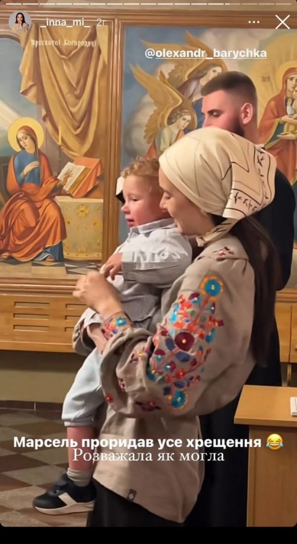 Вона зазналась, що Марсель був не в захваті від процедури хрещення. Майже всю церемонію проплакав. Тож усі, як могли намагались його заспокоїти. «Марсель проридав усе хрещення. Розважала, як могла», — розповіла Інна.