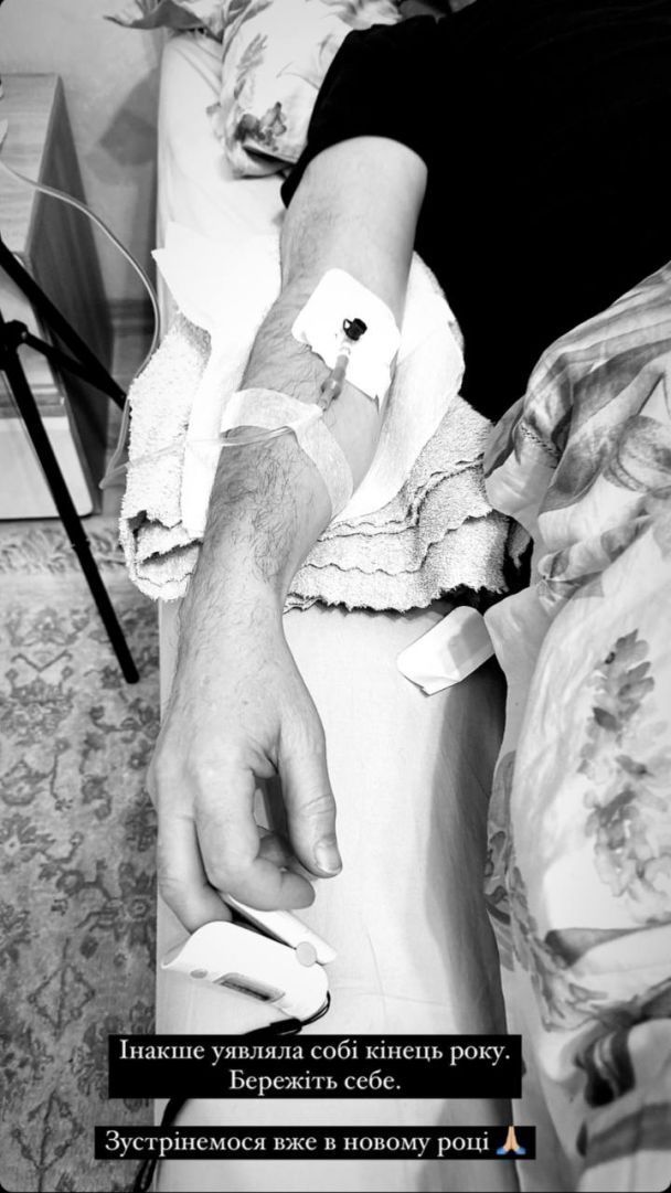 Пізніше вона виклала чорно-біле зображення, на якому видно чоловічу руку, яка, ймовірно, належить співакові, і крапельницю.
