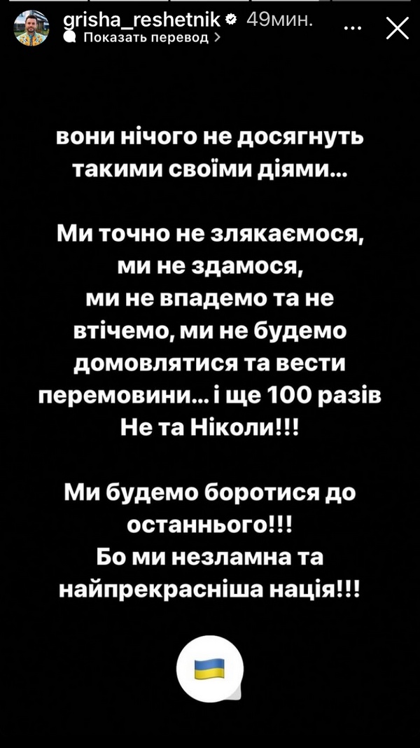 «Вони нічого не досягнуть такими своїми діями… — написав Григорій. — Ми будемо боротися до останнього!!! Бо ми незламна та найпрекрасніша нація!»