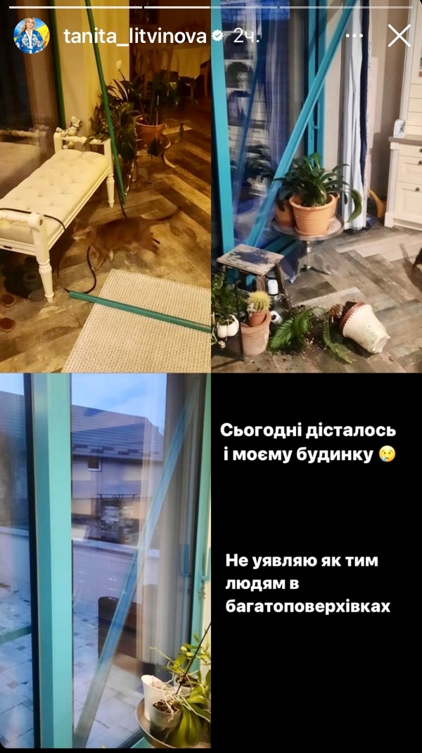 Ракетна атака пошкодила будинок відомої шеф-кухарки, зірки «МастерШефа» Тетяни Літвінової. На своїй сторінці вона розмістила світлини пошкодженої квартири.