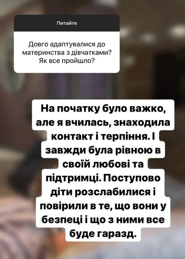 Відповідаючи на запитання підписників, вона зізналася, що найважче було на початку. Їй було не просто комунікувати з двома доньками. Вже зараз, коли пройшло майже два роки, діти адаптувалися, відчули любов та турботу людини, яка стала для них по-справжньому рідною. Дівчата вже називають Наталією мамою.