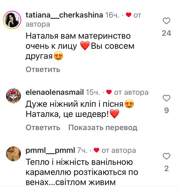 Шанувальники відразу відреагували на новий доробок Наталі, написавши їй слова подяки за чуттєве відео та пісню. Багато хто зауважив, що з материнством Наталя дуже змінилась.