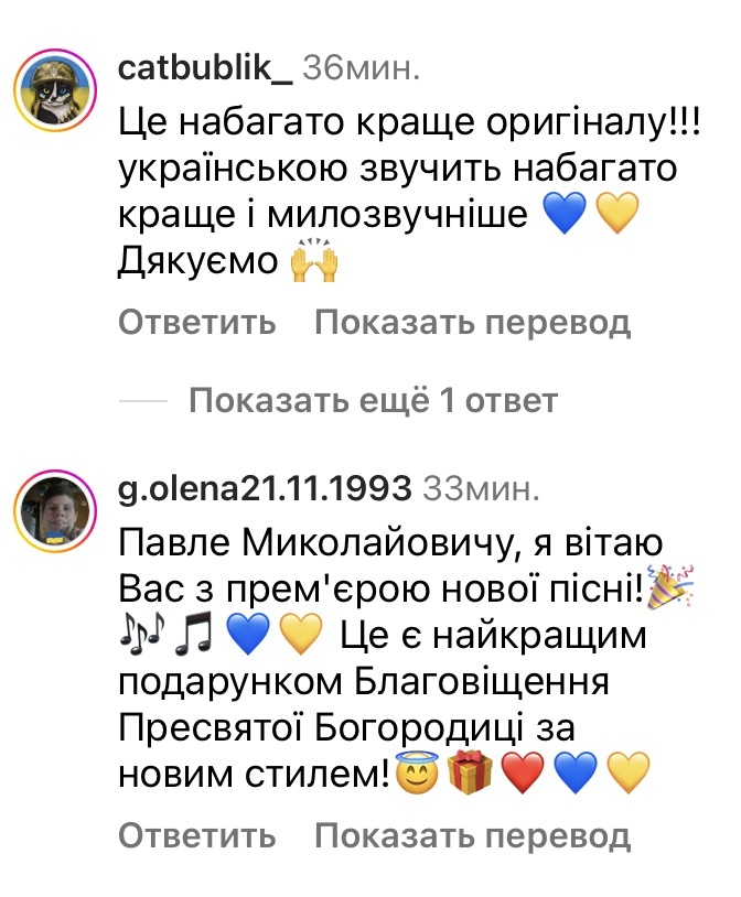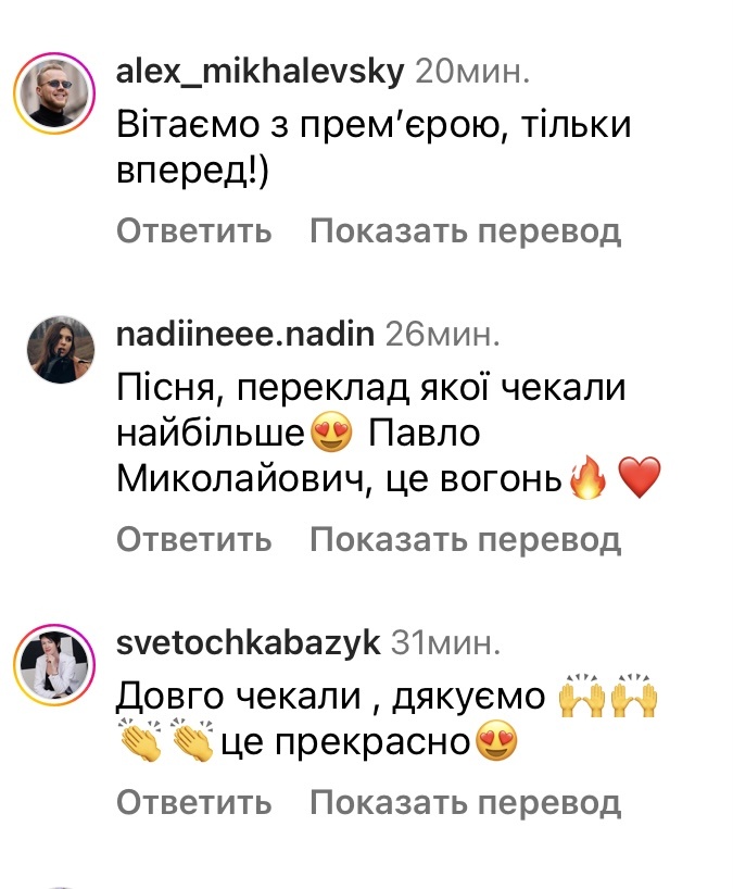 «Пісня, переклад якої чекали найбільше, — написали у коментарях. — Павло Миколайович, це вогонь!»