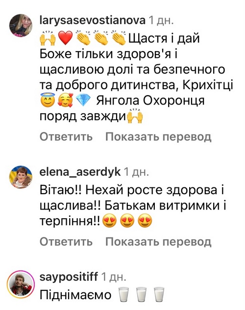 «Щастя і, дай Боже, тільки здоров'я і щасливої долі та безпечного і доброго дитинства крихітці, — побажали у відповідь. — Янгола-охоронця поряд завжди».