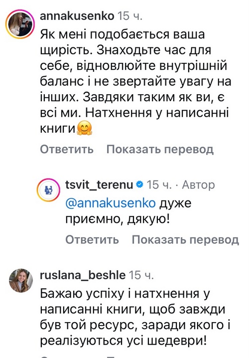«Цікавих вам творчих мандрів, — побажали ветерану. — Це цілий світ. Зичу вам завжди на цьому шляху обирати себе. Чекатиму другу книгу і повернення з цієї творчої подорожі».