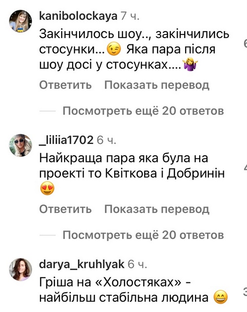 «Закінчилось шоу, закінчились стосунки, — написали шанувальники реаліті. — Яка пара після шоу досі у стосунках…»