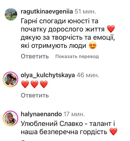 «Гарні спогади юності та початку дорослого життя, — відгукнулися на допис. - Дякую за творчість та емоції, які отримують люди».