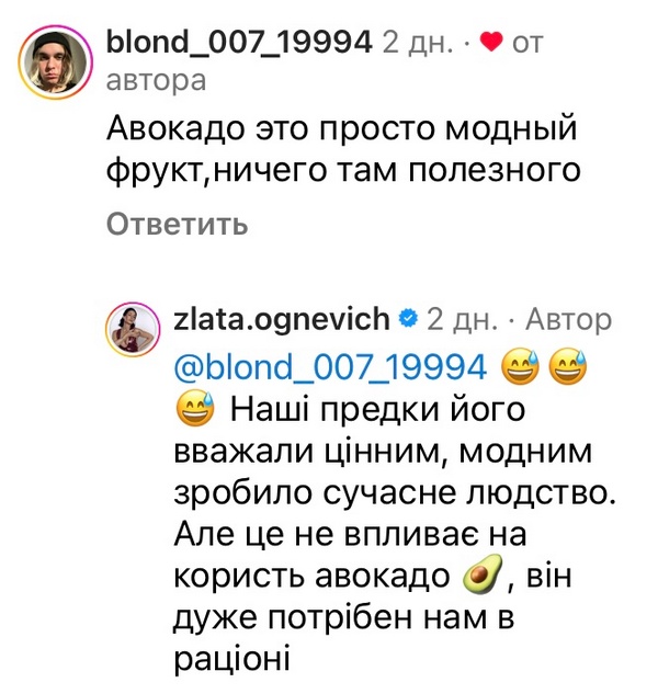 «Авокадо — це просто модний фрукт, нічого там корисного», — написали шанувальники.