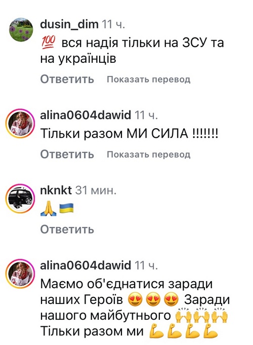 «Дякуємо і обʼєднуємось в Україну та в ЗСУ!» — написали у відповідь.