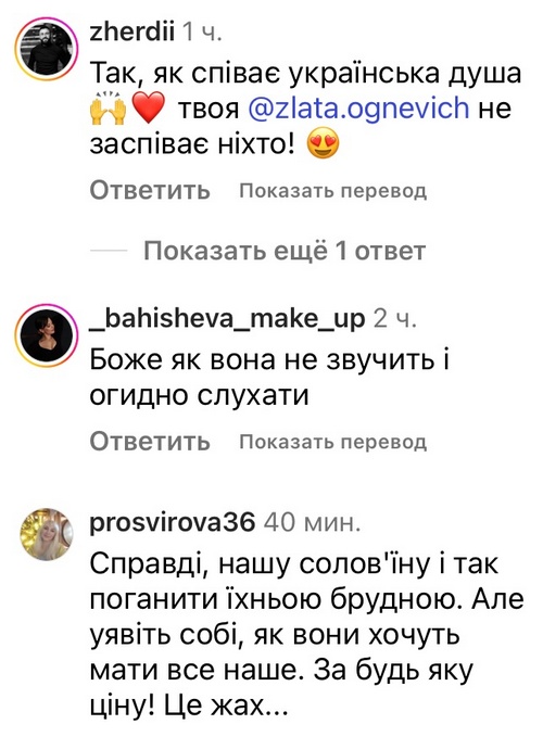 «Думала, мене вже нічим не здивуєш, — обурилася Злата, шокована почутим. — От що можна чекати від країни, яка постійно привласнює і краде собі щось хороше і чуже. В останню чергу я могла уявити, що моя пісня стане частиною роспропаганди… Досі перебуваю у шоці. Бо мені надіслали близько 30 виступів з різних фестивалів, концертів при підтримці „єдіной росії“, які мені боляче було дивитися та слухати».