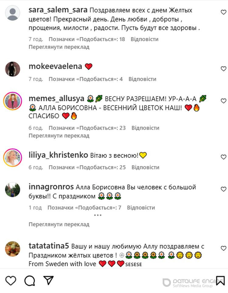 Тим більше, що у їх з Аллою Борисівною сім'ї прийнято відзначати у першу неділю березня День жовтих квітів або «свято початку весни», яке вигадала сама Примадонна. В усі минулі роки вона в цей день традиційно говорить, що «дозволяє весну», і та начебто приходить (до речі, синоптикиня Наталія Діденко це підтверджує).