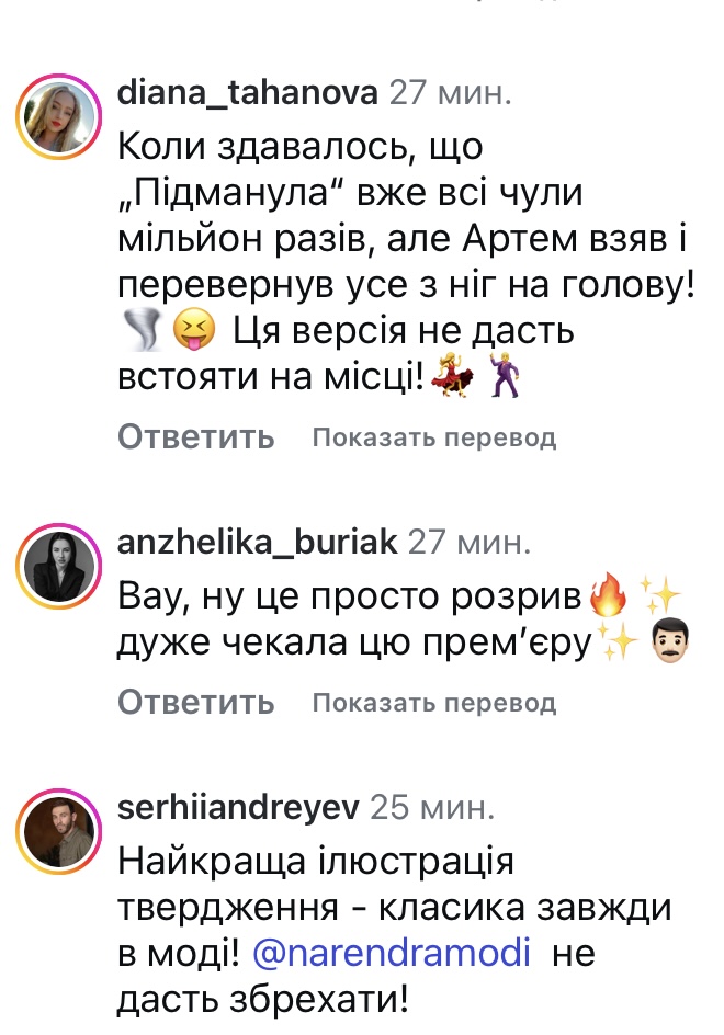 — «Підманула» — це чергова нагода популяризувати нашу культурну спадщину, що є важливою місією для мене, — презентував свою роботу Артем. - Вдячний хлопцям з Kalush Orchestra, що підтримали мою ідею і доповнили цю роботу своєю енергією, зробивши її меседж ще потужнішим. Настрій пісні максимально розкривається через формат проєкту «The Вуса». Ми створили справжній музичний відео екшн, де є місце гіперболізації та комізму. РЕКЛАМА