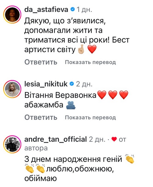 Підписники, серед яких багато зірок, привітали Вєрку зі святом.