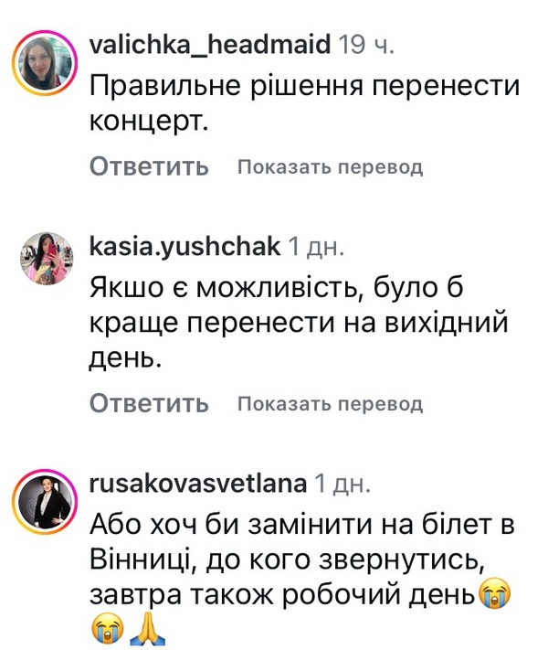 Підписники підтримали рішення, зауваживши, що не всі зможуть потрапити на концерт через робочий день.