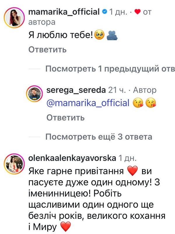 «Яке гарне привітання, ви пасуєте дуже один одному! — зауважили у коментарях. - З іменинницею! Робіть щасливими одне одного ще безліч років, великого кохання і Миру».РЕКЛАМА