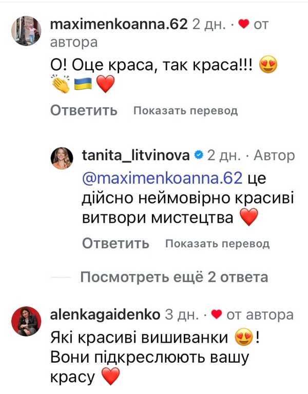 «Які красиві вишиванки! — поділилися враженнями. — Вони підкреслюють вашу красу».