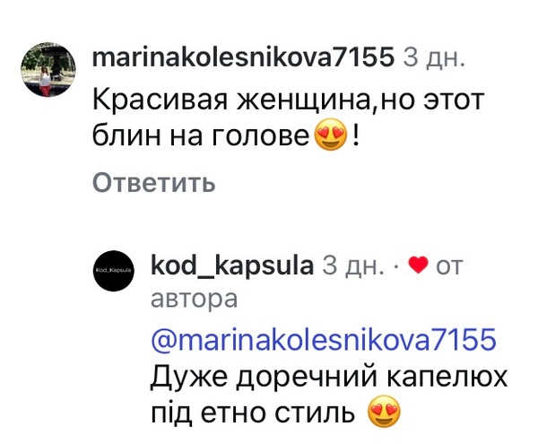 «Дуже доречний капелюх під етностиль», — підтримали образ Тетяни.