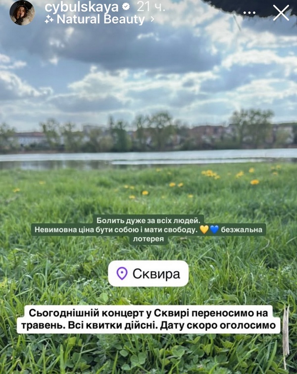«Болить дуже за всіх людей, — написала вона на своїй сторінці у мережі. — Невимовна ціна бути собою і мати свободу. Безжальна лотерея».РЕКЛАМА