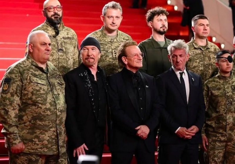 Разом з Боно червоною доріжкою Канн пройшов також його друг, відомий актор, який підтримує Україну, Шон Пенн. Разом з ним були ветерани війни й ведучий та військовий Культурних сил України Коля Сєрга.