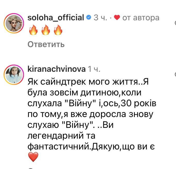- Як саундтрек мого життя, — поділилися у коментарях. — Я була зовсім дитиною, коли слухала «Війну» і, ось, 30 років по тому, я вже доросла знову слухаю «Війну».РЕКЛАМА