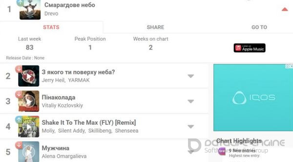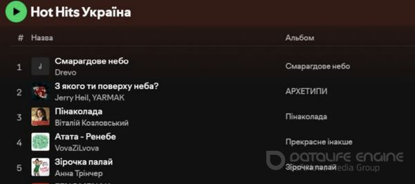 Але станом на шосте червня склалася зовсім інша картина: хіт-паради на всіх трьох ведучих музичних платформах YouTube Music, Apple Music і Spotify очолює українська пісня «Смарагдове небо».