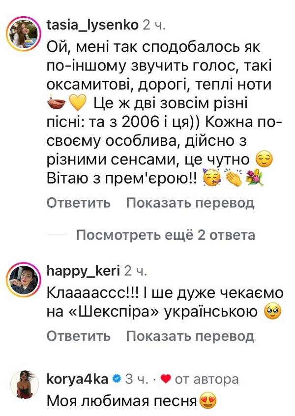 «Ой, мені так сподобалось, як по-іншому звучить голос, такі оксамитові, дорогі, теплі ноти, — додали у коментарях. — Це ж дві зовсім різні пісні: та з 2006-го і ця)) Кожна по-своєму особлива, дійсно з різними сенсами, це чутно».