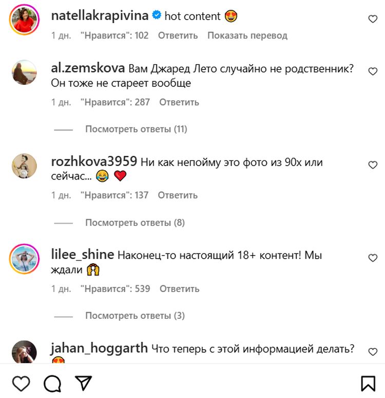 «Нарешті справжній 18+ контент! Ми чекали», «Ось усе розумію, крім одного: Максиме, ви дорослішати (старіти) коли-небудь плануєте? Чи не соромно вам?», «Аполлон відпочиває», «Дуже гарячий чоловік», — написали фанатки.