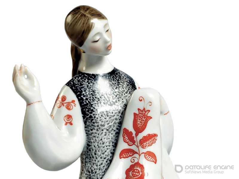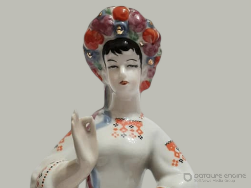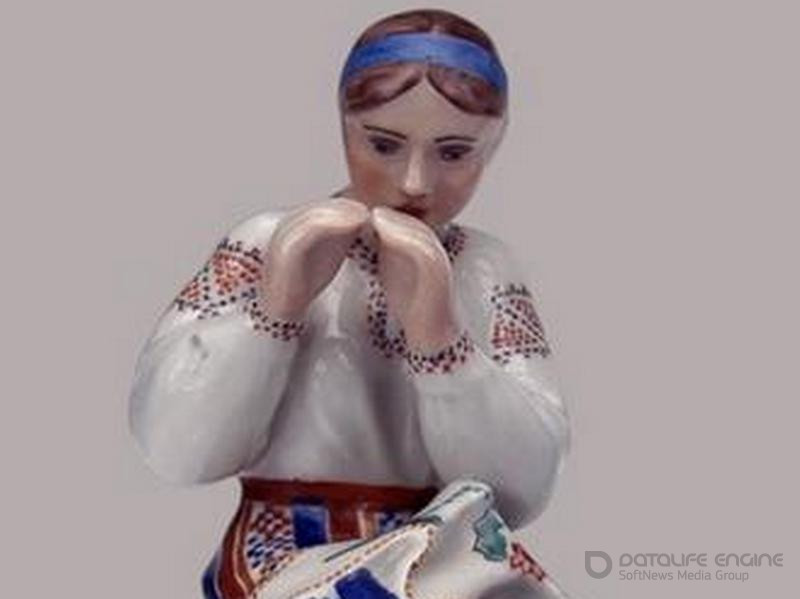 - А от робота Василя Мусієнка «Українка», створена в 1987 році на Київському експериментальному кераміко-художньому заводі. Скільки барв та експресії! Галерея образів українських вишивальниць, створена вітчизняними митцями-фарфористами, зачаровує красою. Ці роботи розповідають про талант та духовні цінності, про естетику, яка нікого не залишить байдужим. Можливо, і у вашому домі є фарфорова фігурка вишивальниці? Якщо так, то вам справді поталанило.